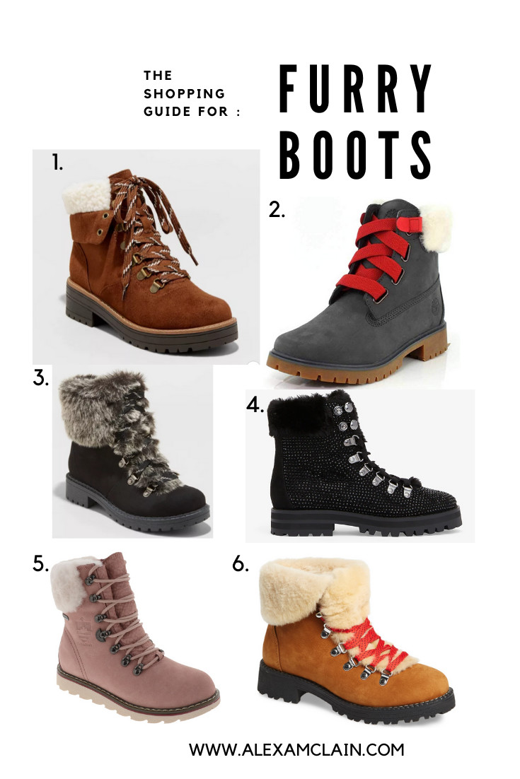 One of my favorite trends that popped up last year and, has carried over to this year, are furry boots! When I was younger I felt like the only “warm” furry boots were Uggs. Now you have multiple options with wayyy better soles and treads. Not only are they warm like Uggs but many are weatherproof too!
